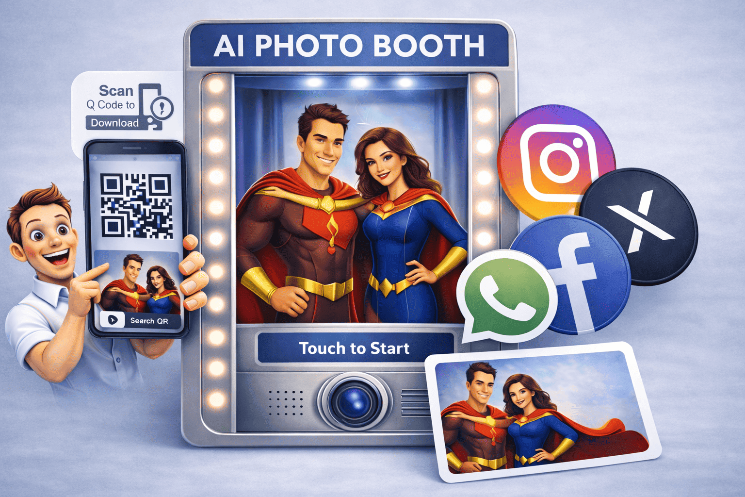 Add AI photobooth experiences as a high-margin upsell — no designers, no editing, no complex setup.
